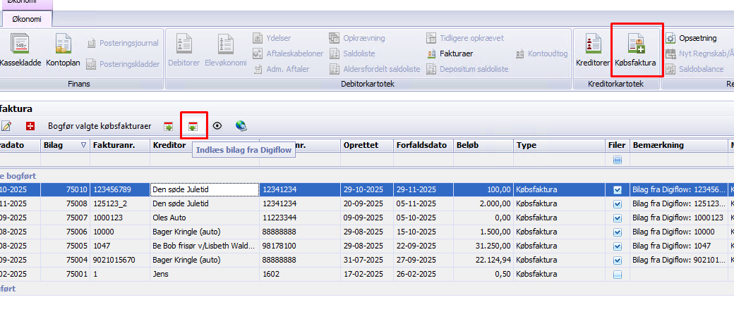 Tryk på ikonet for import af bilag (se billedet nedenfor)